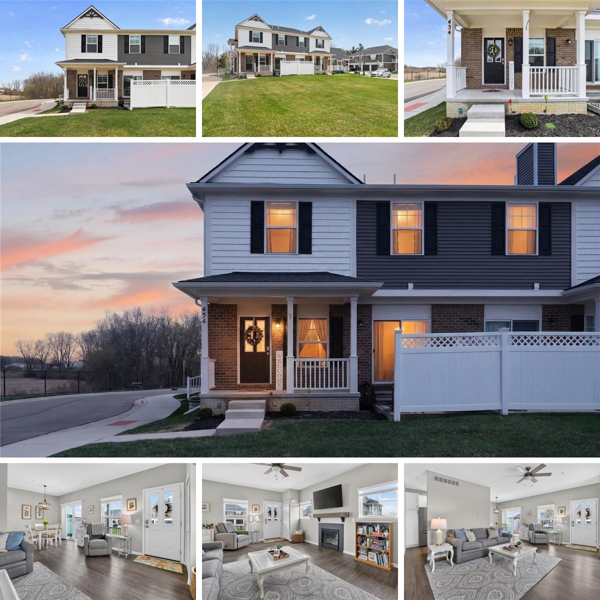 The main level showcases 9-foot ceilings, luxury vinyl plank flooring throughout, and expansive windows that fill the home with natural light, an exceptional benefit of this end unit location. The open concept layout flows seamlessly from the dining area into the spacious great room, anchored by a charming fireplace, creating an inviting space for both everyday living and entertaining.